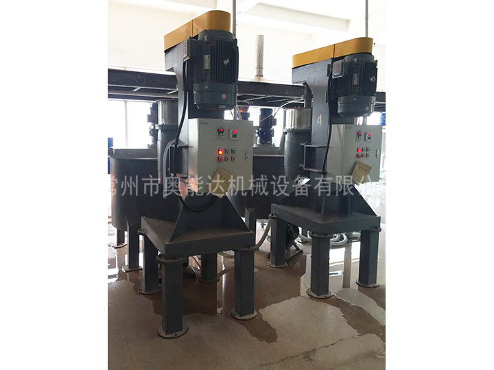 循環式攪拌球磨機的主要特點是研磨后可獲得窄的粒度分布,磨介和研磨室的投資較少,但能處理大量的物料。料漿可進行連續的監測,其它的配方成份可在研磨過程中隨時加入預混缸中,敏感的成分可在研磨臨近結束時加入。因為料漿在研磨室中停留時間短,大部分時間在預混缸中,因而使得其具有好的溫度控制。